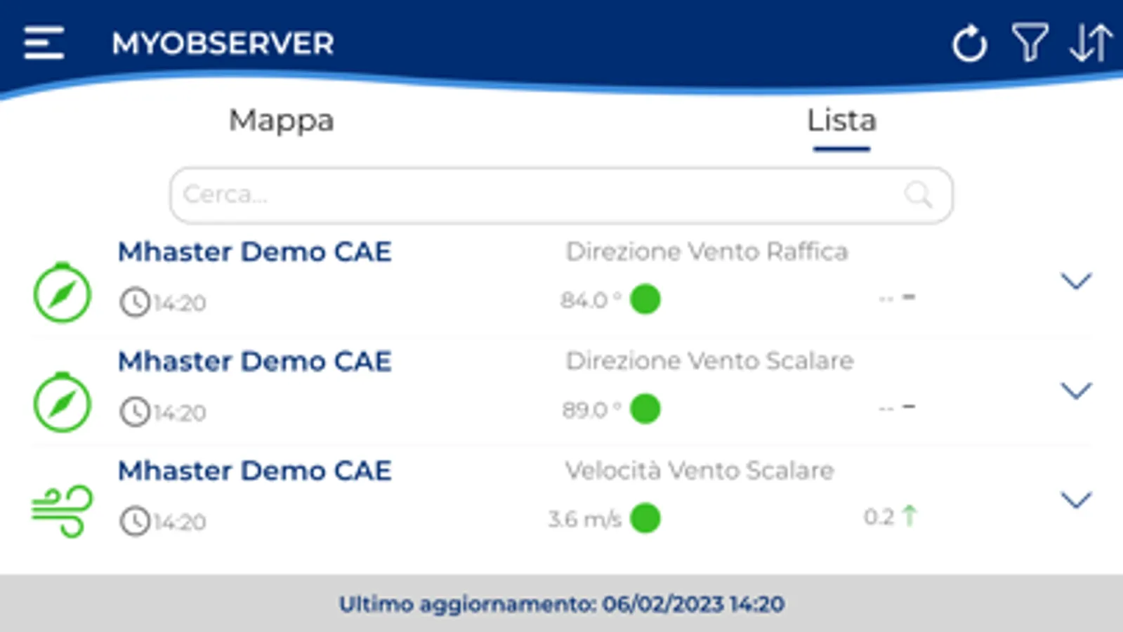 L'acquisizione dei dati e la configurazione degli stati vengono eseguiti sulla centrale CAE DataLife, dalla quale l’app scarica i contenuti necessari e li mostra all’utente in molteplici modi.