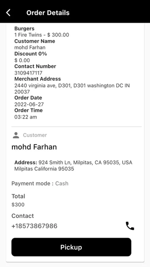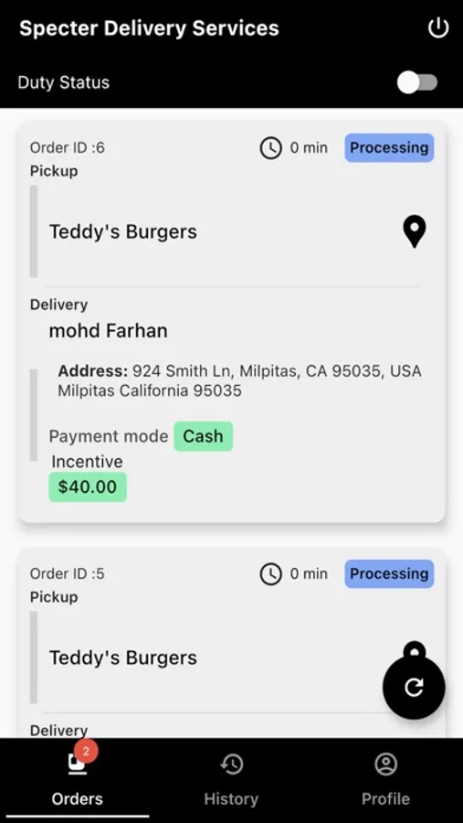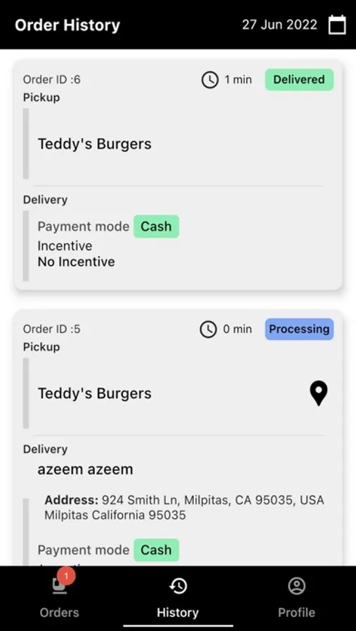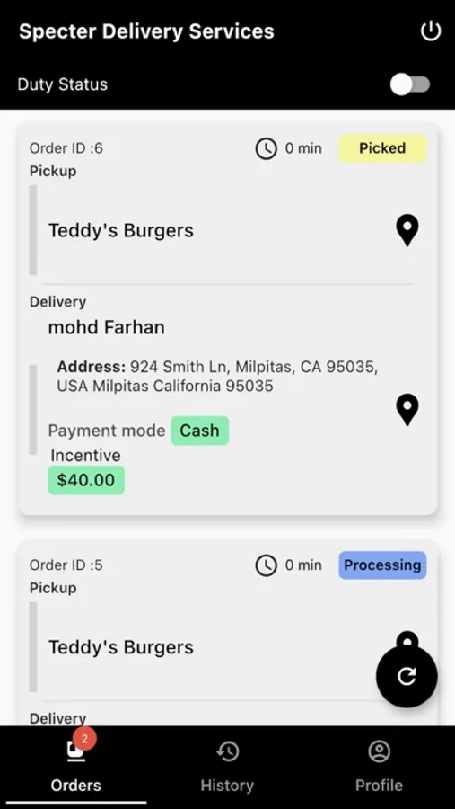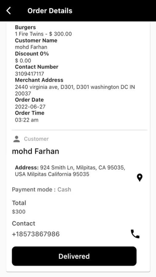 Using the app, the delivery agent received order alerts via push notifications, and then picked orders from the restaurant and delivered to the customer.