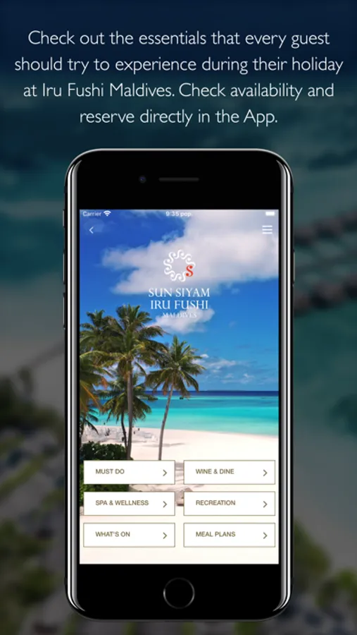 Explore Sun Siyam Iru Fushi and its stunning facilities, plan your visit and activities from your device before and during your visit. Use this app to start planning your stay, and ensure you don’t miss-out on any of the incredible experiences on offer at Iru Fushi Maldives. Contactless check-in can be done before your arrival at your convenience. During your stay the app provides the perfect travel companion, showing what’s on, providing you with fantastic inspiration from the recommended bucket list experiences which you can book directly from the app. Your itinerary is always accessible to see what adventures you have planned.