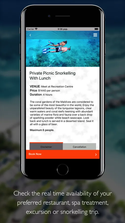 - Perfect your stay by booking restaurant tables, excursions and activities such as snorkelling, scuba diving or spa treatments;