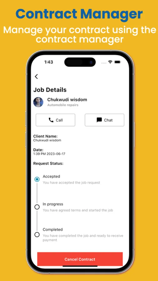 Our contract manager helps organize your contracts. You can either accept, reject or renegotiate contract terms using the contract manager. We do not charge you till a contract is accepted. You can only accept a contract once, so make sure you have read through the terms properly before accepting.