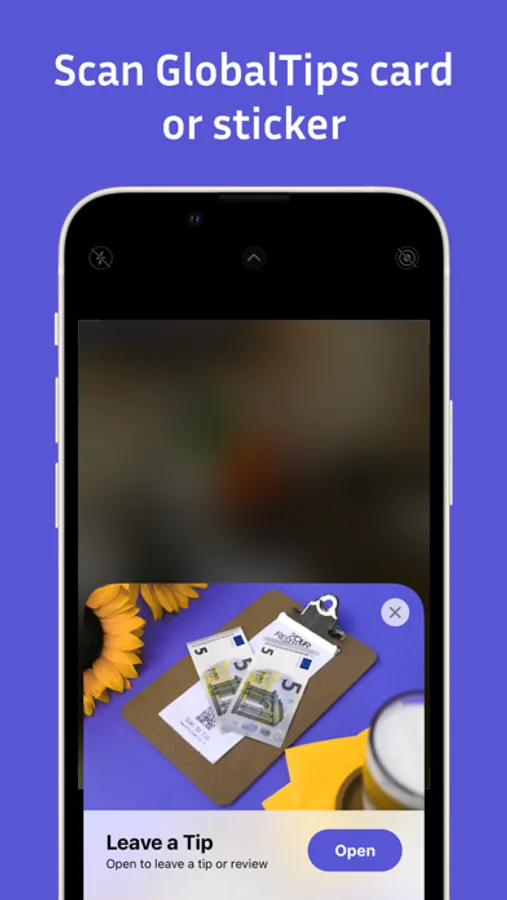 1. Whenever you are at a participating restaurant, hold your iPhone near the GlobalTips card or sticker or point your camera at the GlobalTips QR code.