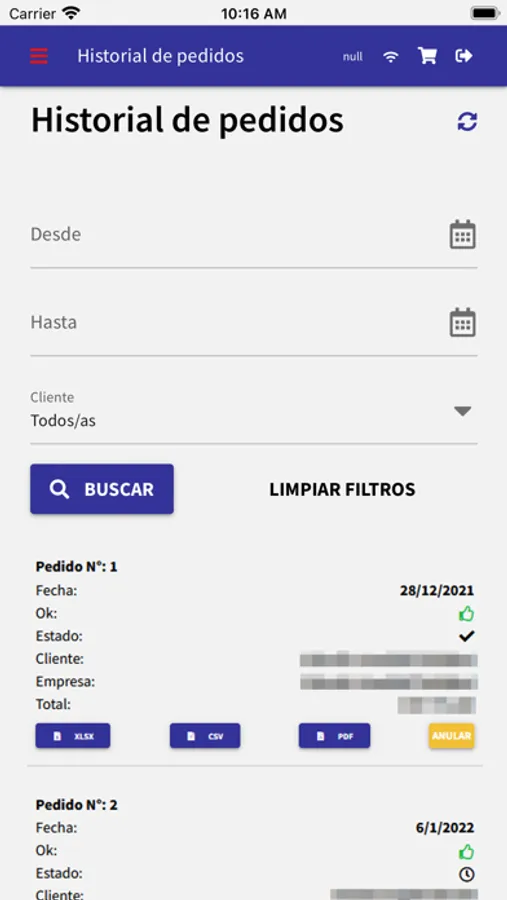 Accederán a un archivo histórico de todos los pedidos cursados por la aplicación, para un mejor control.