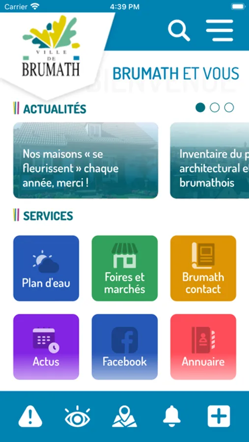 • Personnalisez votre page d’accueil grâce à des tuiles interactives qui vous donnent des informations pratiques et à jour (ouverture de la déchèterie, annuaire des commerces, se déplacer à Brumath et alentours…).