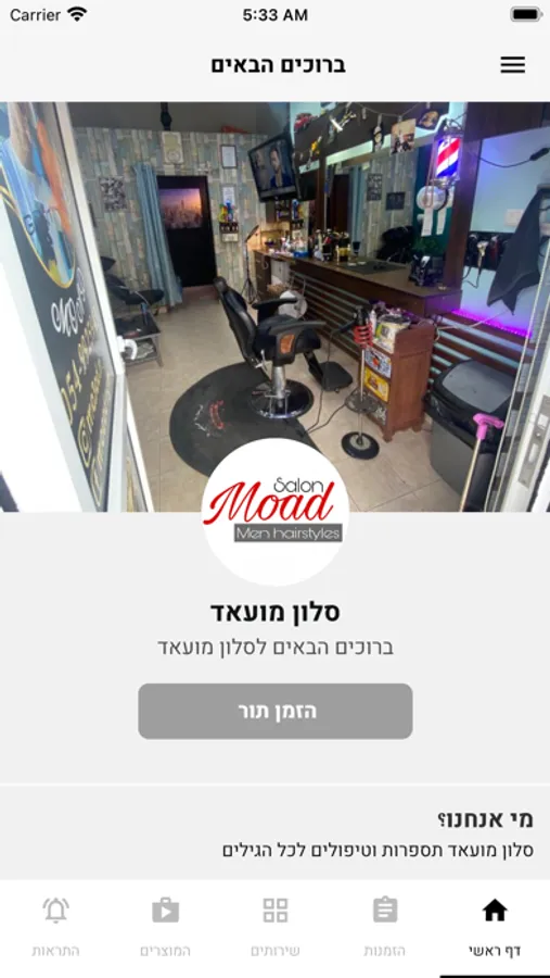האפליקציה הינה אפליקציה לקביעת תורים המאפשרת לכל בעל עסק לנהל את התורים של העסק שלו בצורה דיגטלית בנוסף לכך הלקוח יהנה משירות מהיר וקל ובמאתעות מספר לחיצות כפתור הוא יכול לקבוע תור על בסיס מקום התורים הפנויים.