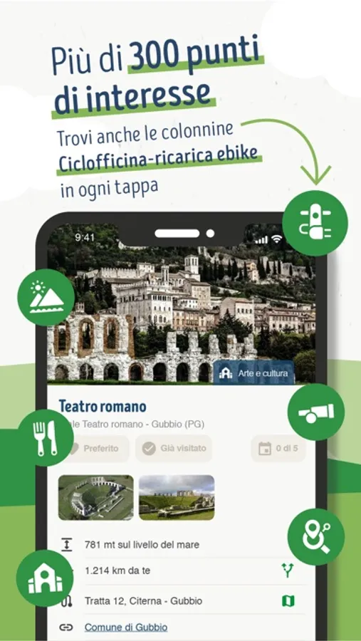 In CicloAppennino sono riportate più di 300 attrazioni turistiche nascoste e imperdibili che si incontrano lungo il tracciato divise per categorie e identificate da un’icona: arte e cultura, paesaggi e borghi, curiosità del territorio, meraviglie della natura, bontà della tradizione.