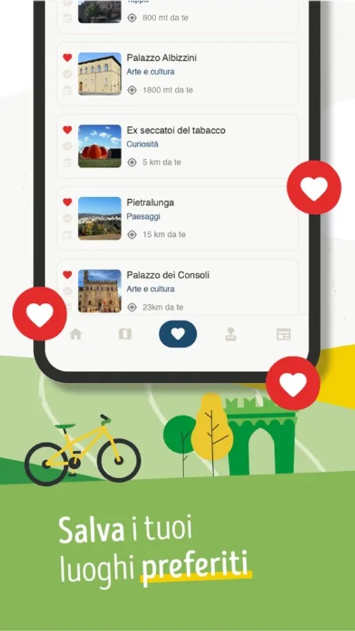 Chi percorre la Ciclovia con quest’app potrà sapere in ogni punto del tracciato quale punto di interesse si trova nei dintorni e come raggiungerlo.
