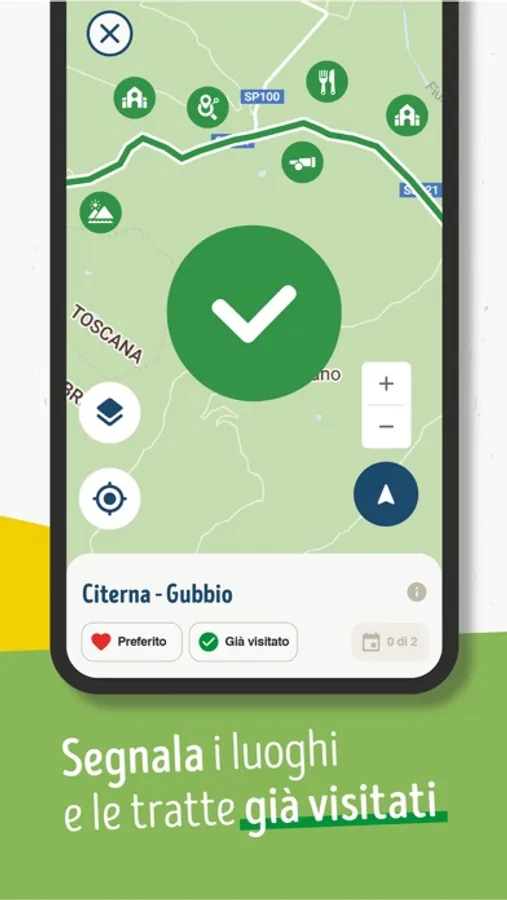 Per pianificare il proprio viaggio o escursione è possibile segnare i punti di interesse e le tratte tra i preferiti e anche se sono state già visitate o meno.