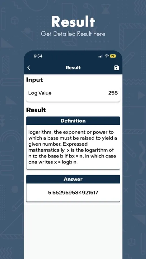 The logarithm calculator for the log is a small size but very useful app. It enables you to find the log of any function without manual calculation, which saves a lot of your time and you can calculate the logarithm of any function by using this calculator.