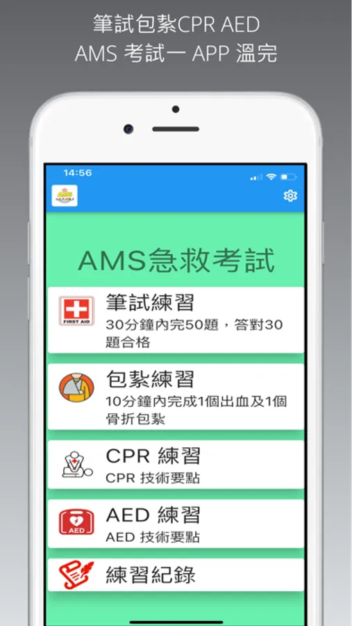 醫療輔助隊 Auxiliary Medical Service ( AMS ) 急救考試練習,一 App 包晒 筆試題、包紥重點、CPR 及 AED 技術要點,放便隨時隨地温習。