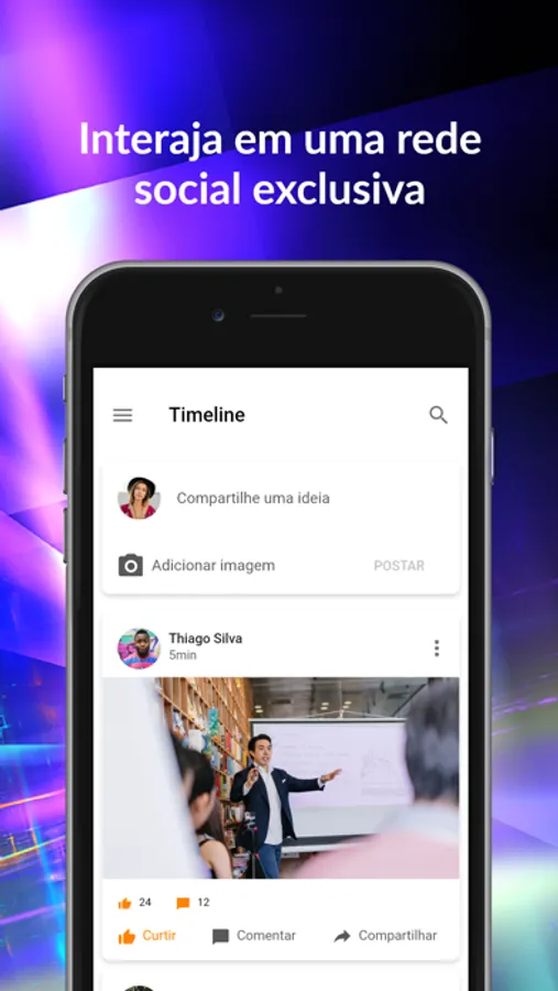 Com o aplicativo Encontro de Gestores DVA, você tem acesso a uma rede social exclusiva, pode fazer novos contatos, enviar perguntas aos palestrantes, trocar mensagens com outros participantes, enfim, interagir com a comunidade. Além disso, você pode consultar a programação, avaliar conteúdos, dar feedback e responder quizzes. Utilize o APP e aproveite ao máximo os recursos.