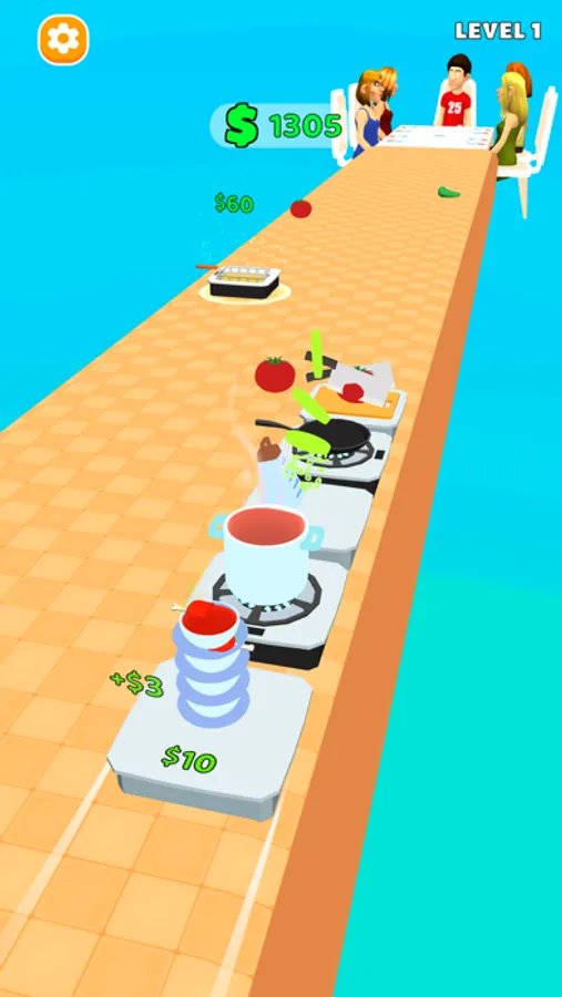 Buy the kitchen tools. Collect the foods. Chop, grate, fry and cook the best food.