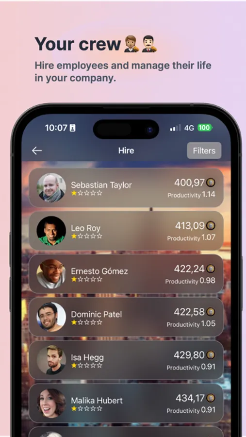 In this engaging game, you will have the opportunity to hire employees, each with their own productivity and salary. Choose wisely who will be part of your team because their dedication and skills will impact your journey to success.