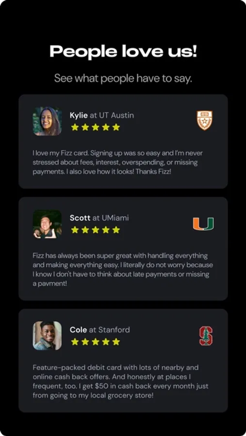 Join thousands of students across the US who are using Fizz to pay for everyday purchases, build their credit, and earn rewards. Download the app to sign up and refer your friends to earn even more rewards!