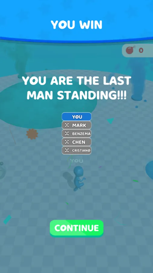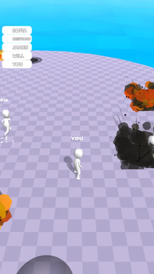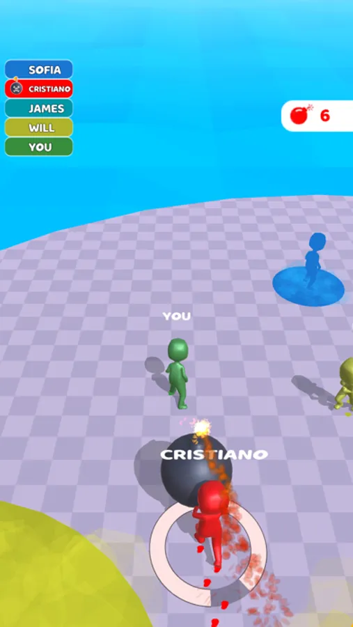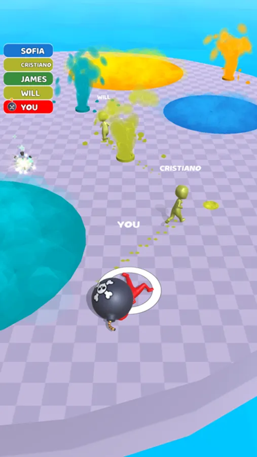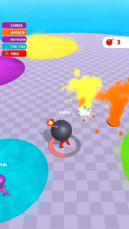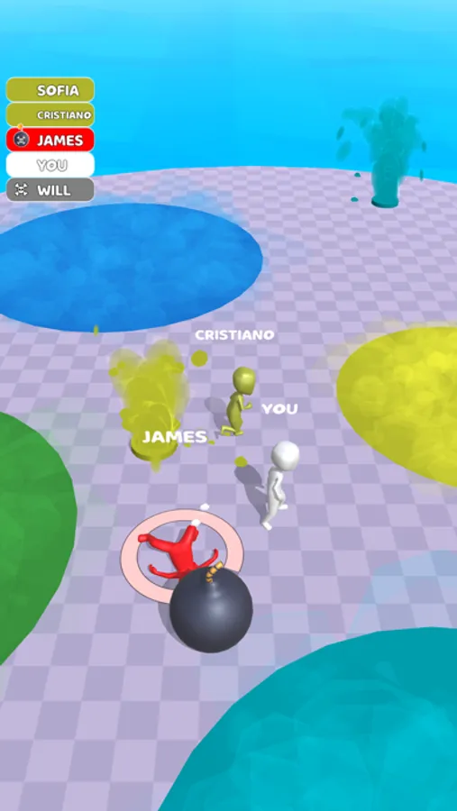 Try to be the last man standing! First, you should get colored by color sprays! Then you can get camouflaged in same color with you! There is a guy with bomb who is trying to blow you up! If you have the bomb, just try to avoid from it by chasing other players!