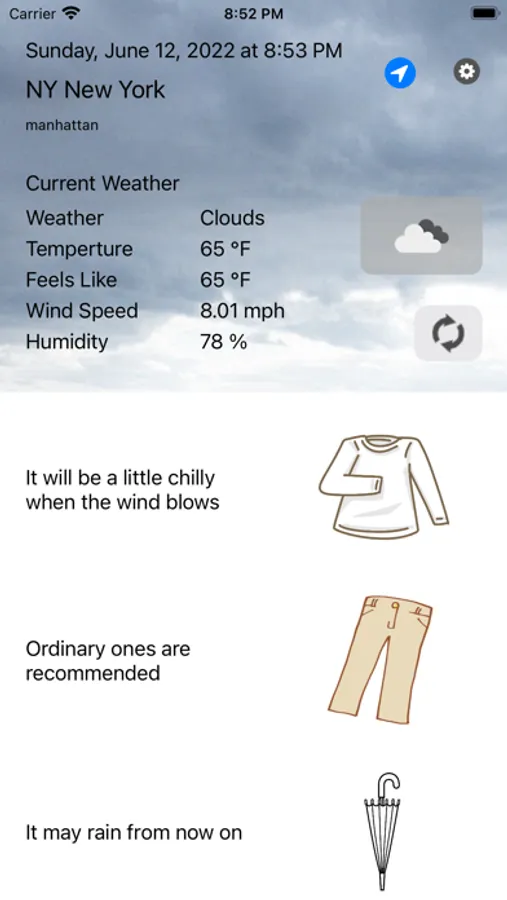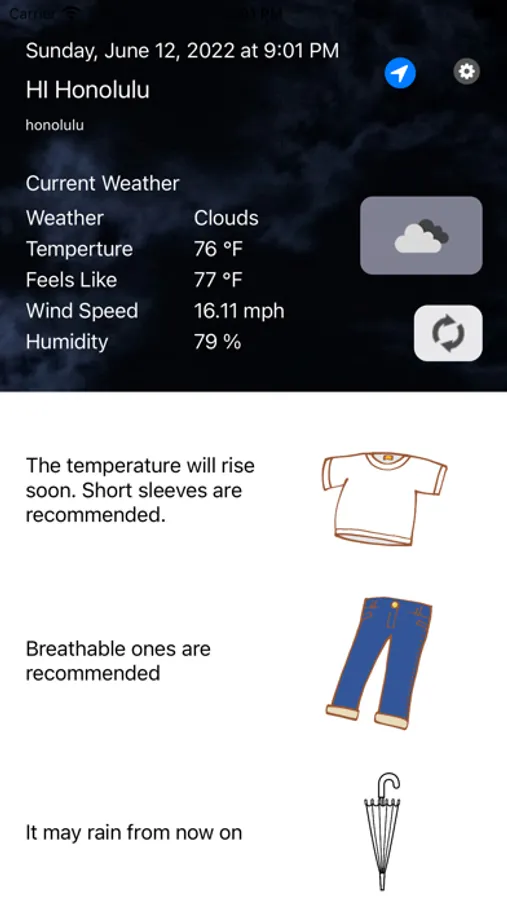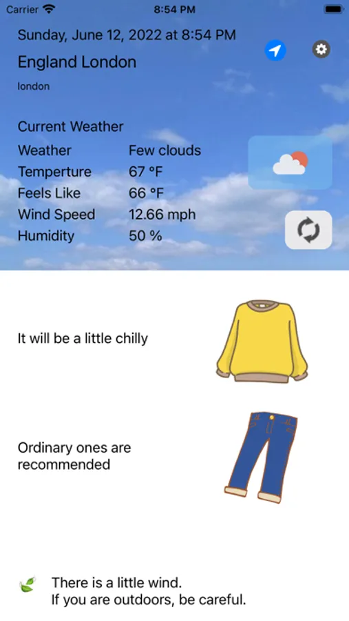 (If you enable location information, the weather information of your current location will be acquired automatically.)