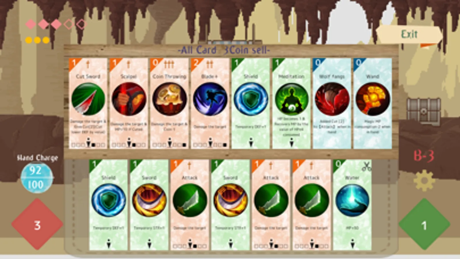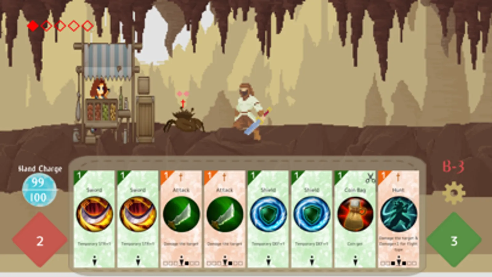 Walk through the underground labyrinth while strengthening your stats and decks.