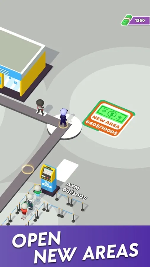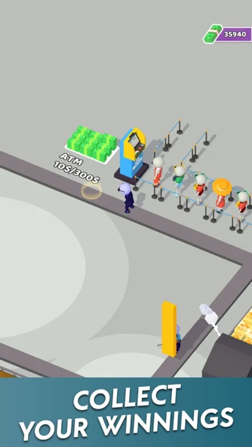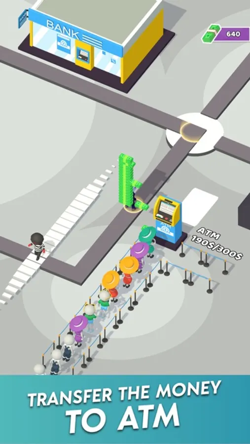 This game features cash-minting machines, thieves, people waiting in line at the ATM, and more!