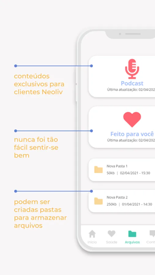 Além do atendimento presencial, on-line, sua experiência será ainda mais incrível aqui no app NeoLiv- Elaine Mardegan, com materiais de desenvolvimento, aprendizados e informações produzidos com muito carinho para que você se sinta mais feliz.