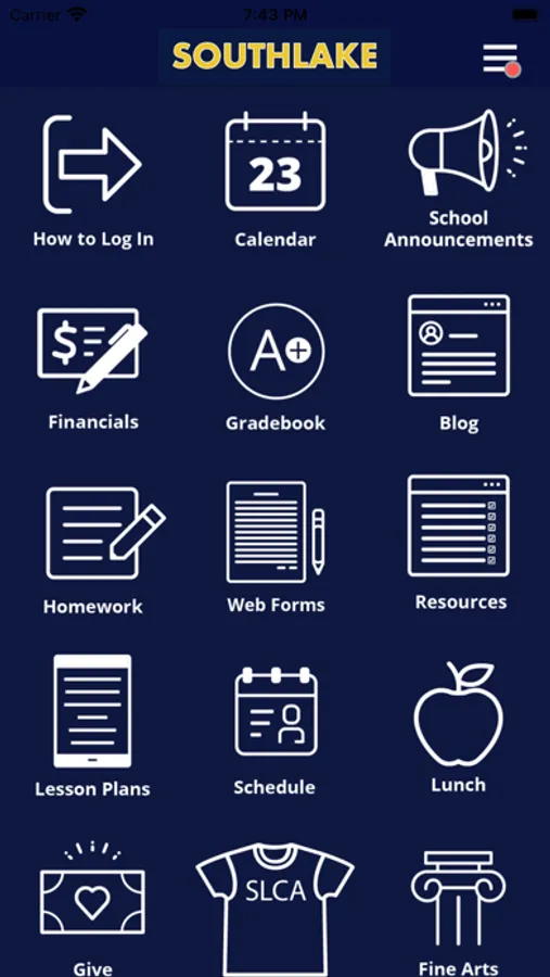Welcome to the Family App created for the benefit of the families and students of Southlake Christian Academy in Huntersville, NC. The SouthLake app is a one-stop-shop for our school community, with anytime, anywhere access to all the tools, content, and communications parents and students need to stay connected and engaged. School information is available in one easy-to-access place: Announcements, School Calendar, Student Grades, Homework, Resources, Family Accounting, Giving Options, and much more.