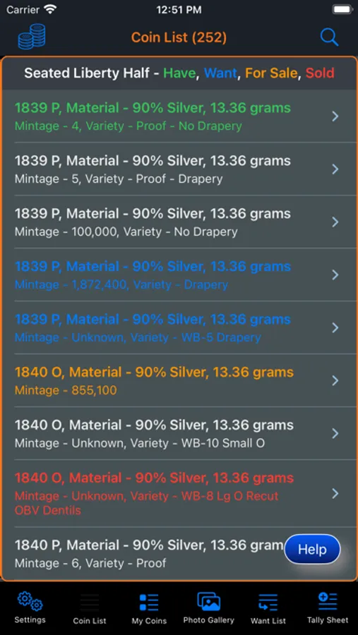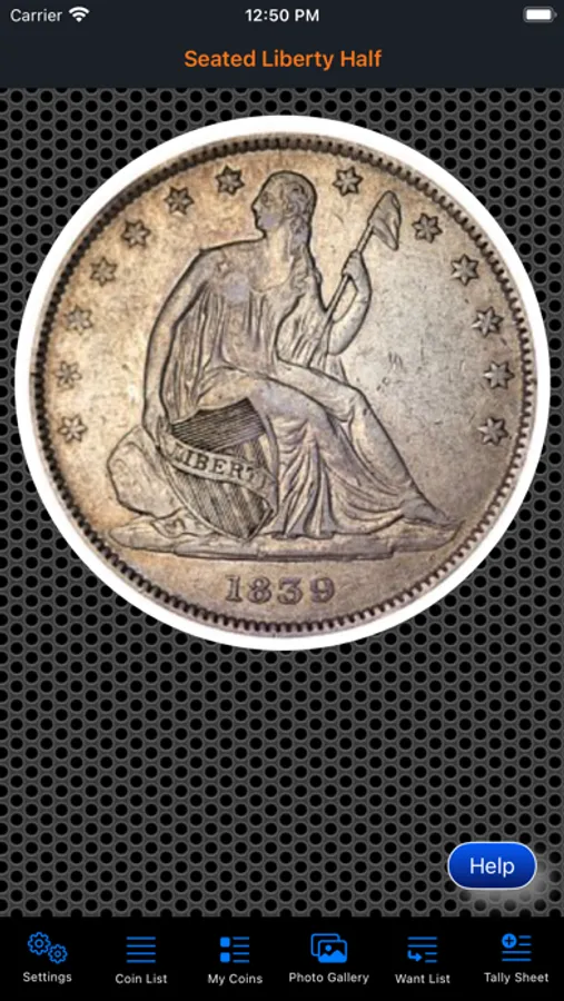 This app was developed for the collectors of Seated Liberty Half Dollars.