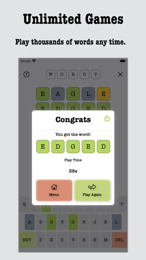 Unlimited Practice Games: Want to refine your skills or just play a few more games? Dive into our unlimited practice games - because the quest for words never ends at Wordy.