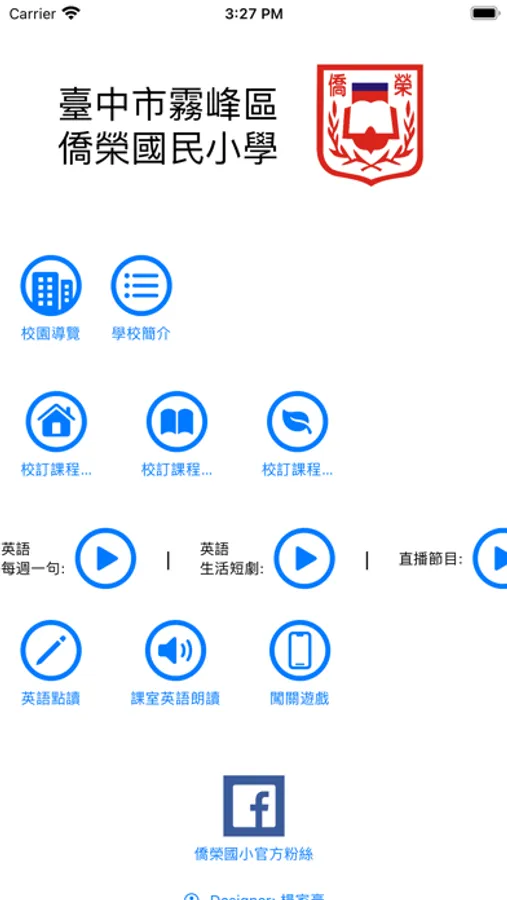 臺中市霧峰區僑榮國小APP,包含僑榮國小的導覽,校訂課程內容教材檔案及教學資源,提供學校老師教學使用.並且連結學校youtube頻道,及英語朗讀功能,提供學生學習使用.