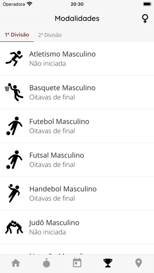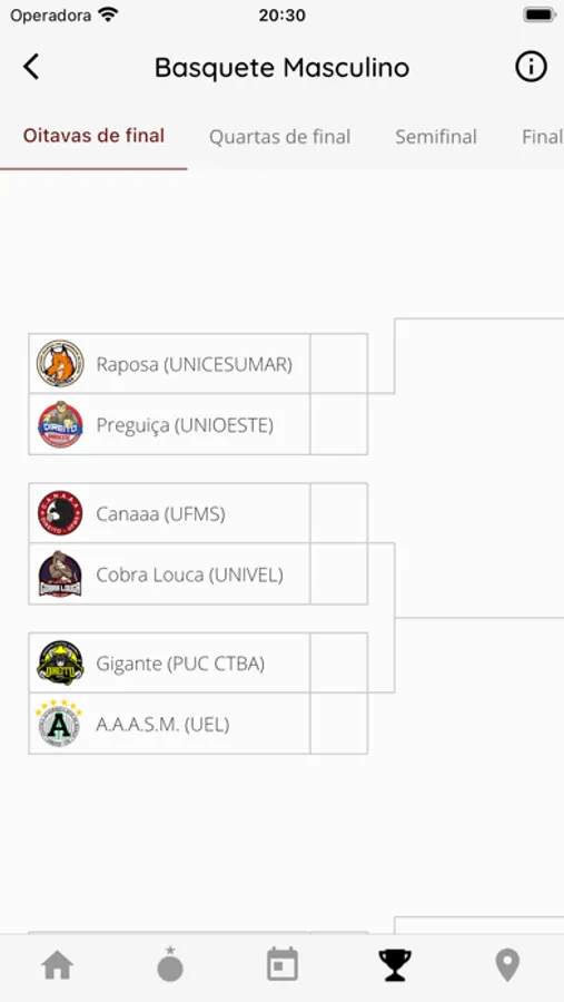 - Ver o calendário de jogos da competição, chaveamento das modalidades e classificações