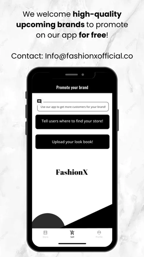 4. Brand sign up to freely promote on the app (First contact info@fashionxofficial.co)