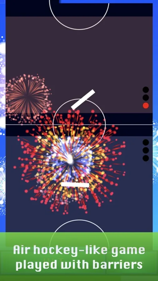 It is a game like air hockey played by bouncing a ball off a barrier. The smaller the barrier is, the bigger the firework goes off. There are 3 modes in total, and there is also a mode where 2 players can play against each other. Play as many games as you can and use the coins you accumulate to unlock all the skins!