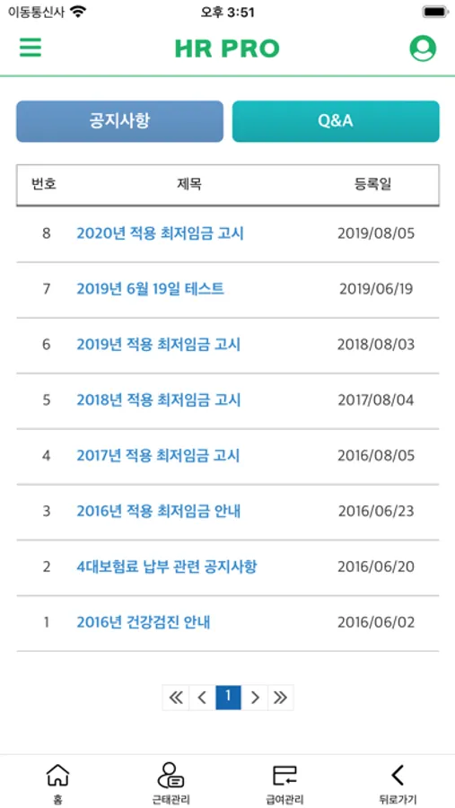 - 각종 공지사항 및 인사노무관련 지식 등 확인