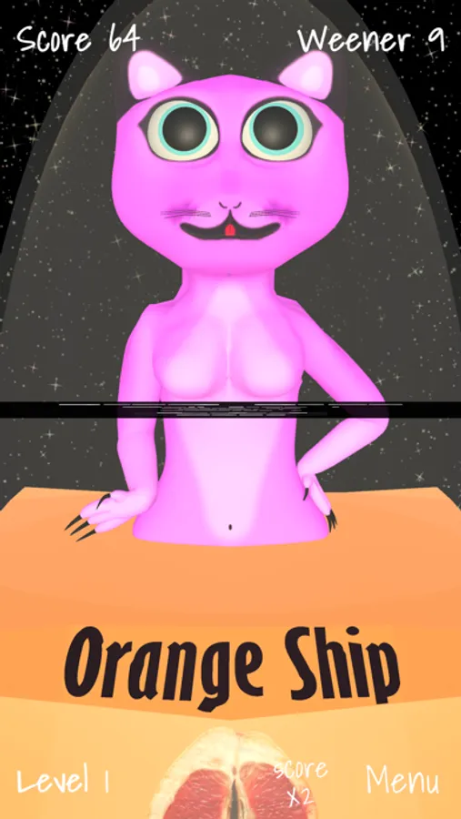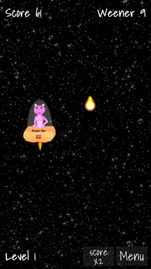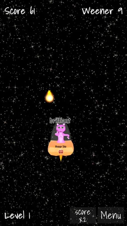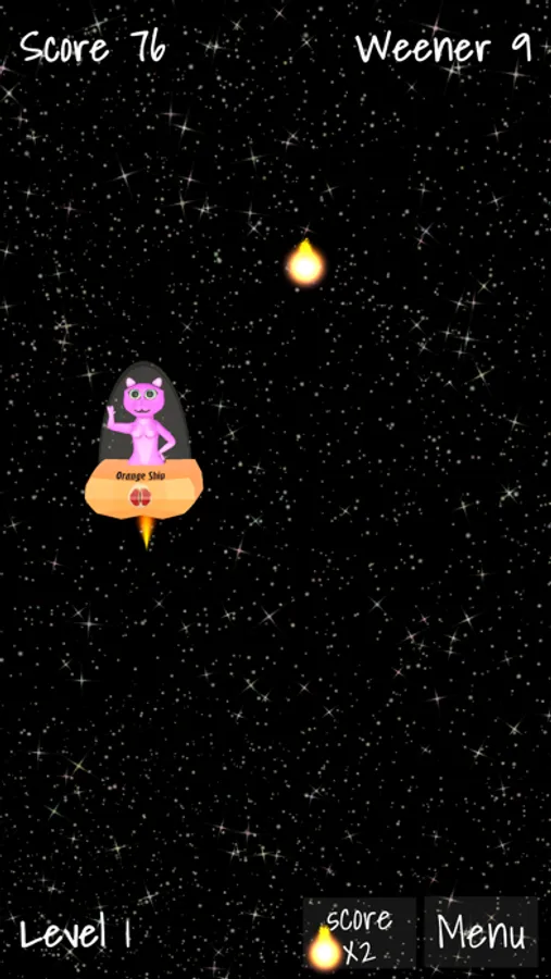 Welcome to the galaxy cat. She is flying with her spaceship through space and she is hungry after weeners. Pass as many meteors as possible and chase all the weeners she’s so hard like.