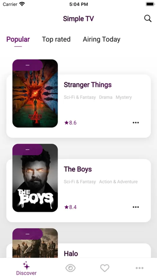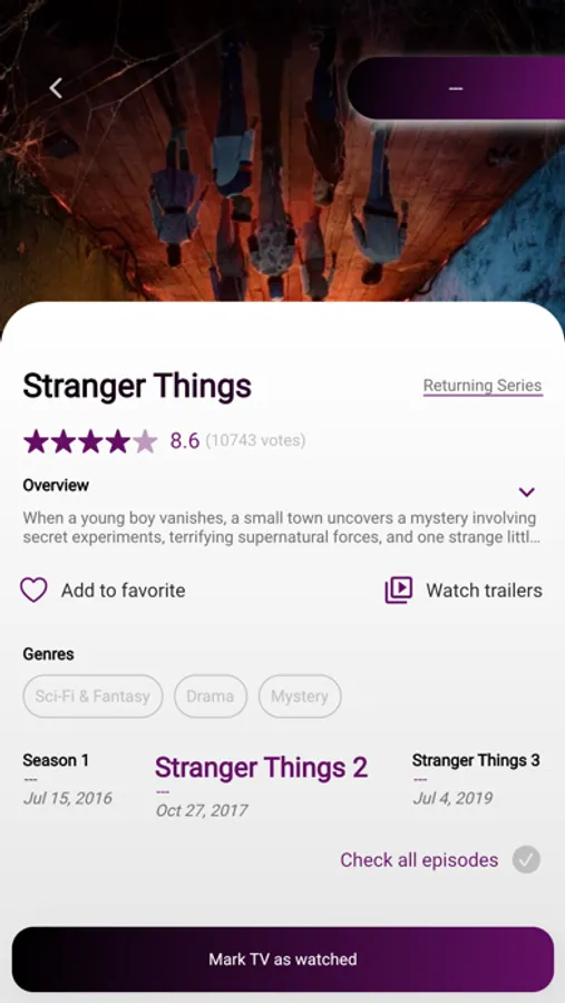 SimpleTv is the simple app which allows you to find popular TV shows, to track your watching progress easily