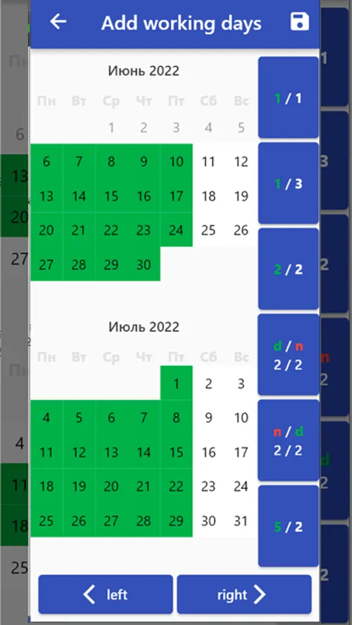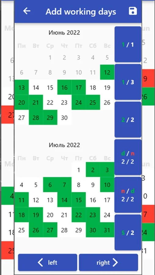Allows you to effortlessly find out the work schedule of your wife, friend, etc. It is possible to save the schedule. Quick and visual rearrangement of the schedule.