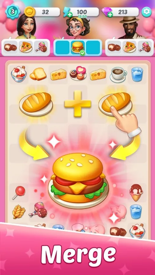 Combine various kinds of foods: cookies, cakes, candies..., serve the customers and earn coins! Become your own chef in this satisfying merging world.