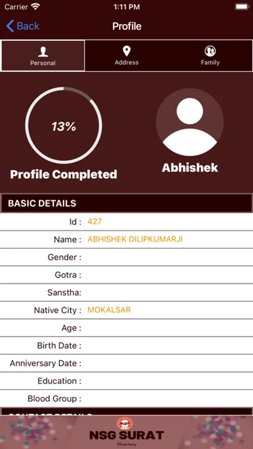 Nakoda Social Group App is a information about all Surat Nsg Members . It contains following features :