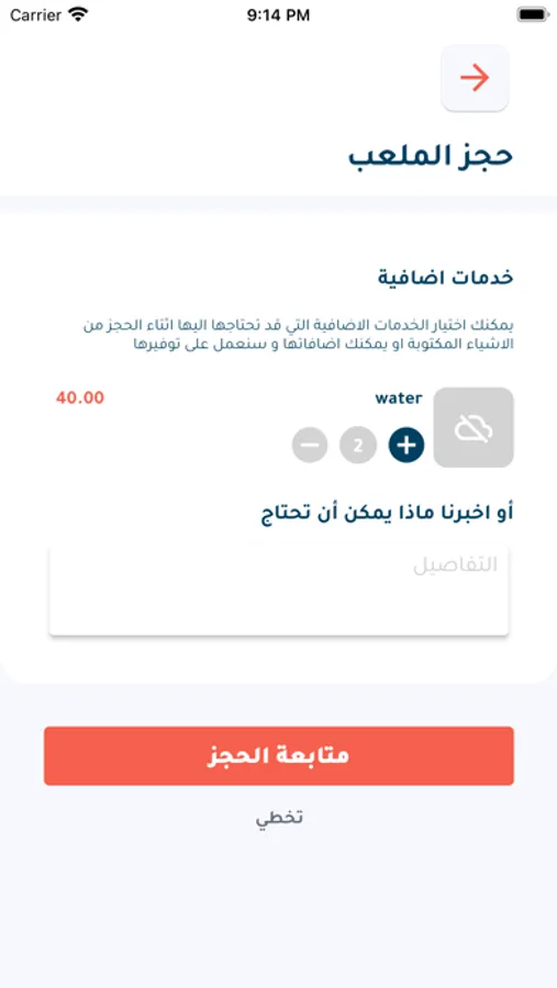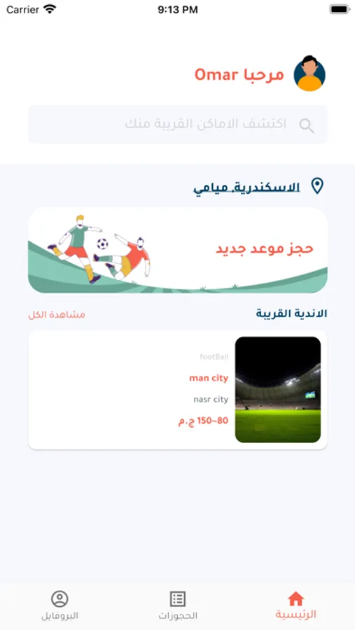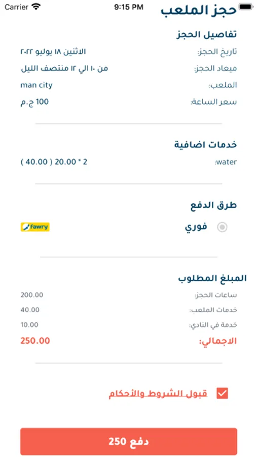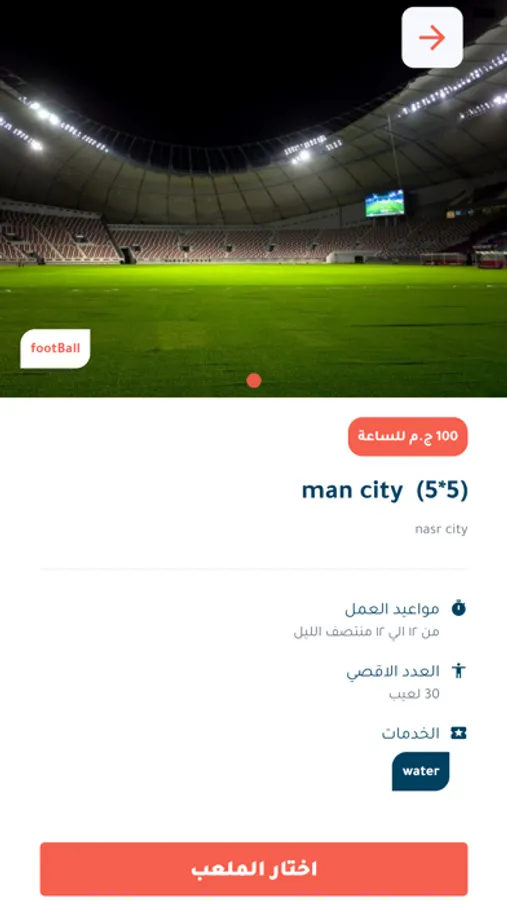 • إمكانية دفع الحجز نقدي (في الملعب نفسه) أو أونلاين.