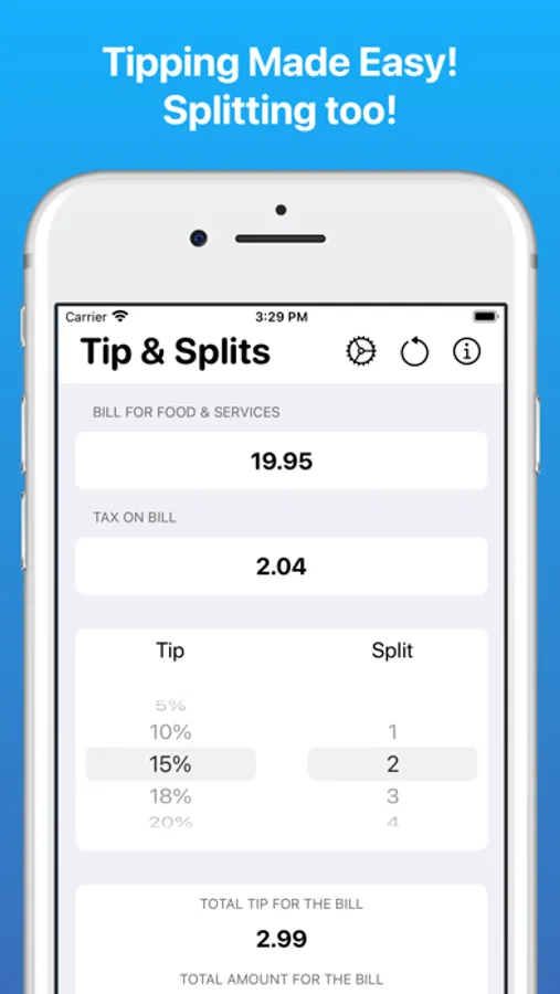 Quickly and easily figure a tip and get the final amounts to put on the bill!