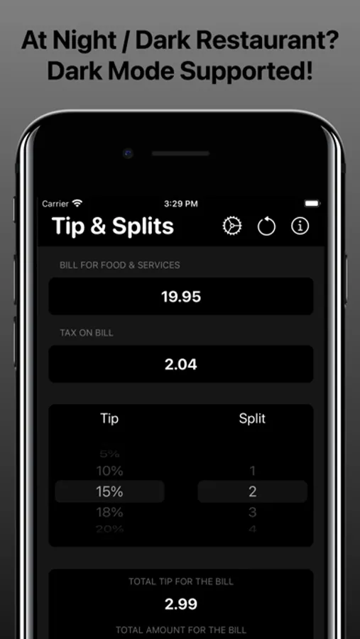 • Change tip and split values in real time to help with your tipping decision.