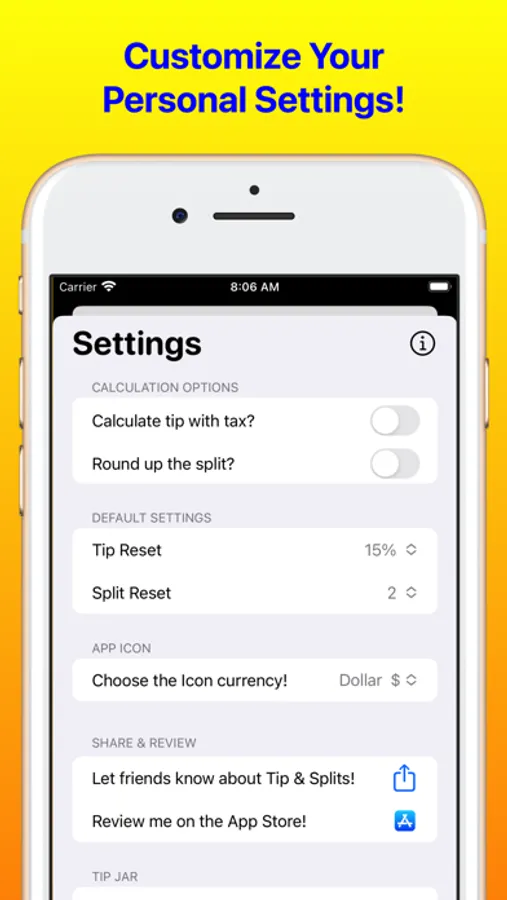 • Set tip and split defaults for the reset button after using different values temporarily.
