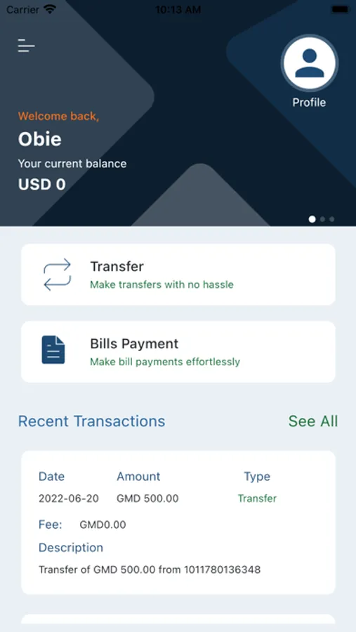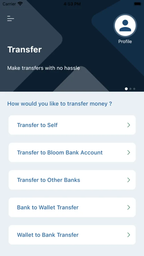 • Make transfers to other Bloom Bank accounts, Other Banks and to International Bank Accounts