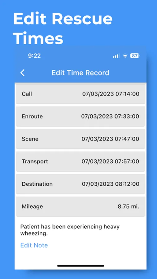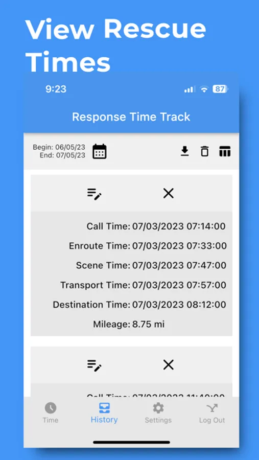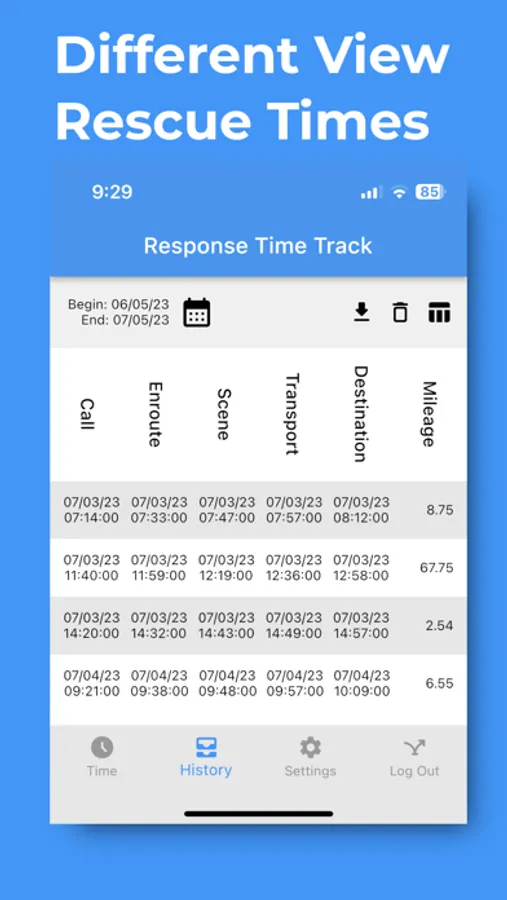 The Response Time Track App's allow first responders to focus more on the rescue and less time on keeping track of reports. The app allows for time to tracked by a push of a button. These times are stored on the phone and can be used for other analysis.