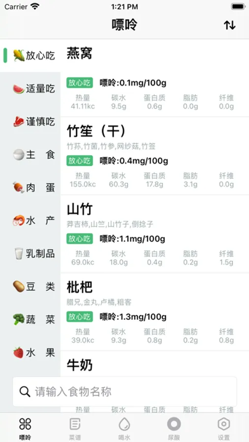 您可以快速的查询常见食物的嘌呤含量,并给你一定的建议是否可以经常食用。除此之外您也可以了解食物的热量、碳水、蛋白质、脂肪、纤维等含量。