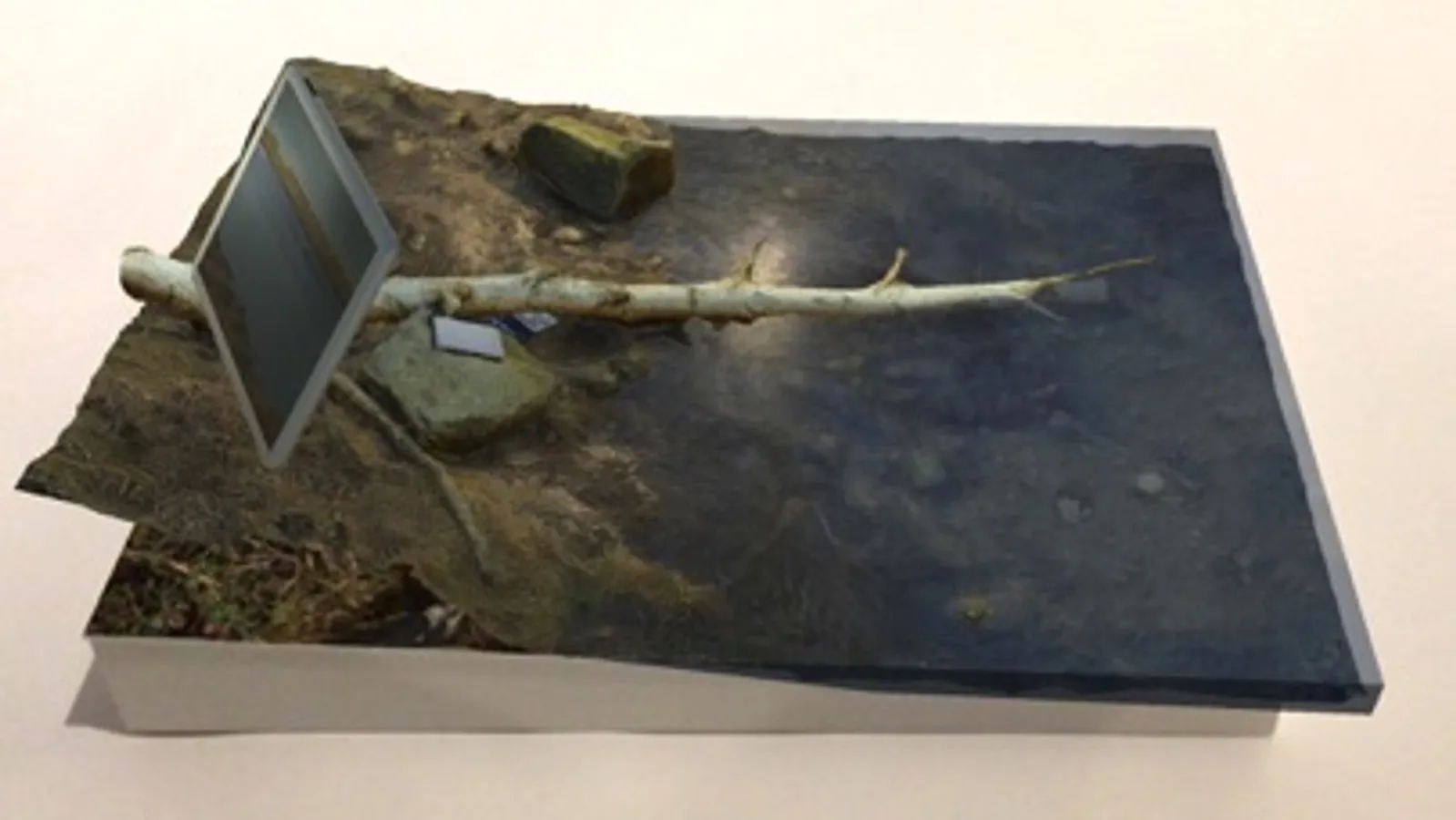 The River Edge [49.065351N, 122.849944W]. Installation: Photograph on platform. 3D scans, vide, audio, AR