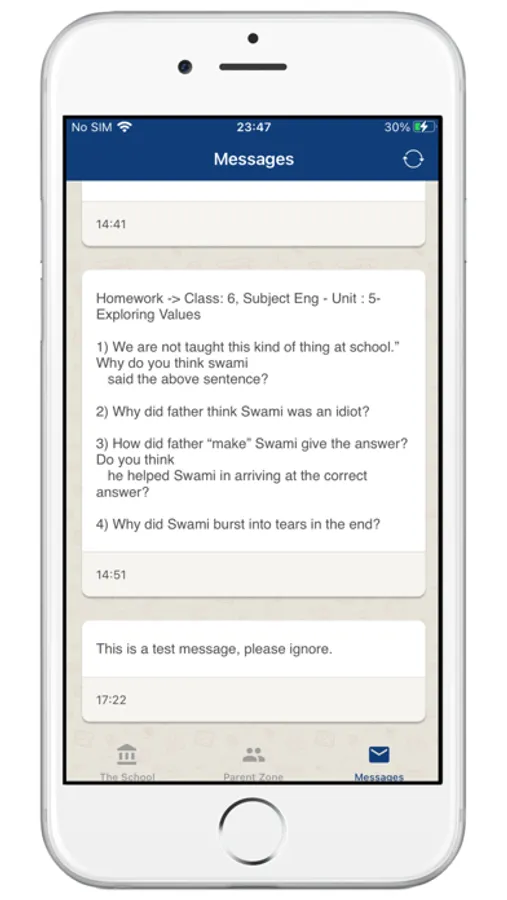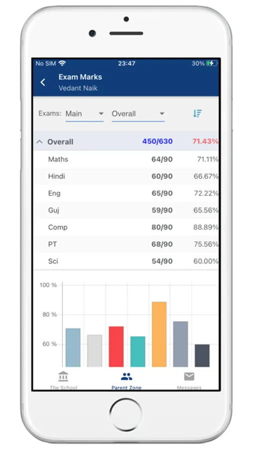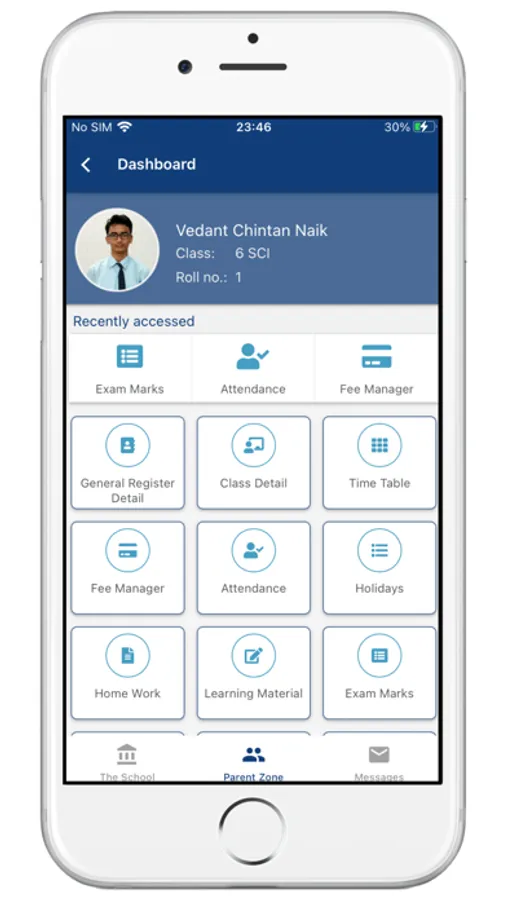 (2) Parent Zone - Parents can see their kid's personal records in this section. For example - General Register details, Time Table, Attendance, Exam Results, Fee Payment details, Home Work etc. Parents will have to register into the app using the same mobile number which is supplied for school General Register record.