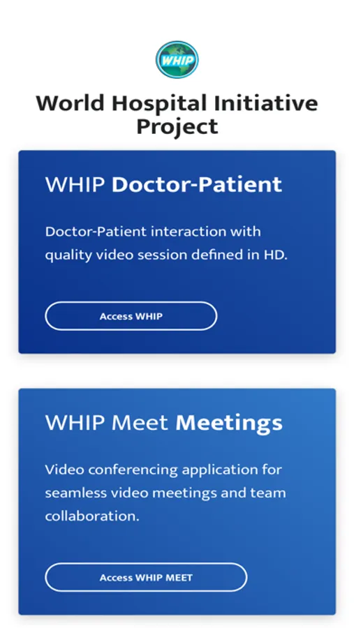WHIP is an all in one doctor to patient and video conferencing application for seamless video interaction, video meetings and team collaboration.