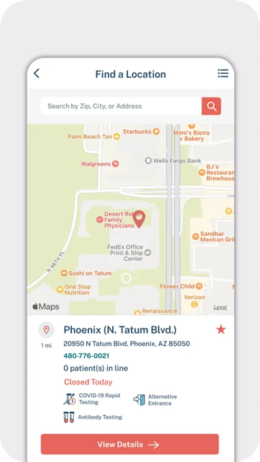 Conveniently find the NextCare clinic nearest you. Just put in your zip code, or enable your location settings and NextCare Anywhere will tell you what clinics are nearby and how many people are currently waiting in line to be seen.