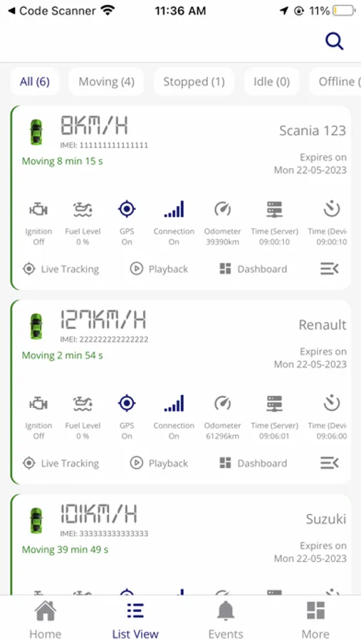 • Shows sensor information, such as, door sensor, fuel sensor, ignition sensor.