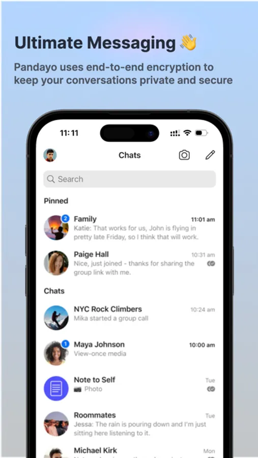 • Secure messaging - Pandayo uses state-of-the-art end-to-end encryption to keep your conversations private and secure.