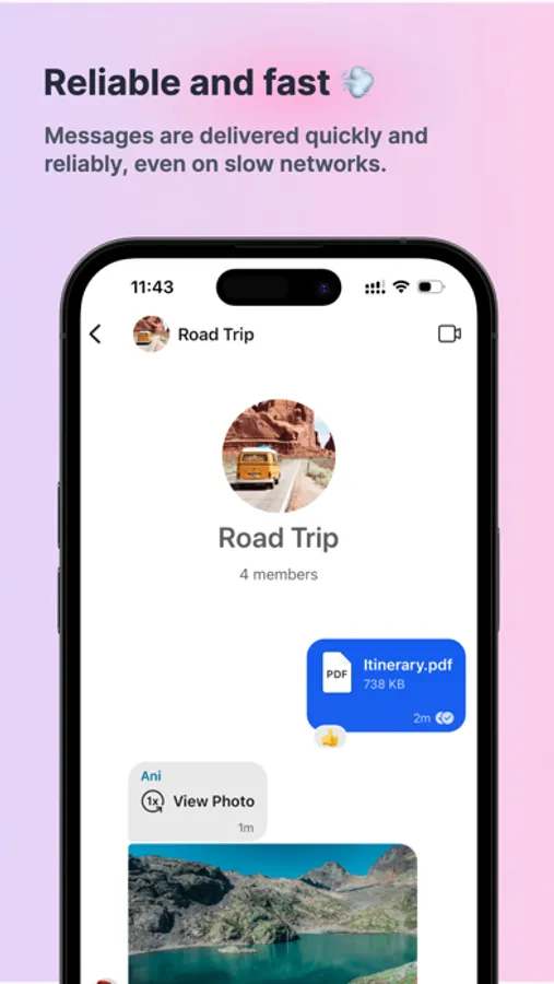 • Reliable and fast - Messages are delivered quickly and reliably, even on slow networks. Pandayo is optimized to work in any environment.